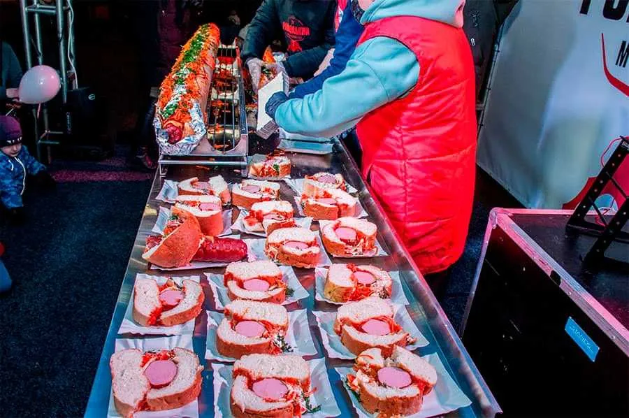 Відомо, що довжина хот-дога становить 2 метри 16 сантиметрів, а вага – 16 кілограмів. Це абсолютний рекорд, який коли-небудь фіксували в Україні.