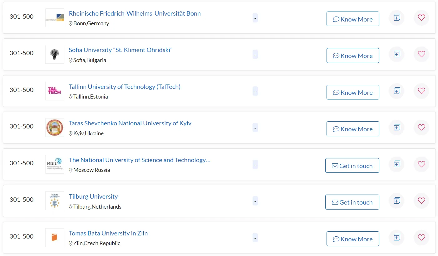 Київський національний університет імені Тараса Шевченка розташувався у діапазоні 301 – 500, а Національний технічний університет України "Київський політехнічний інститут імені Ігоря Сікорського" – 501+. До слова, останній потрапив до поважного рейтингу вперше.