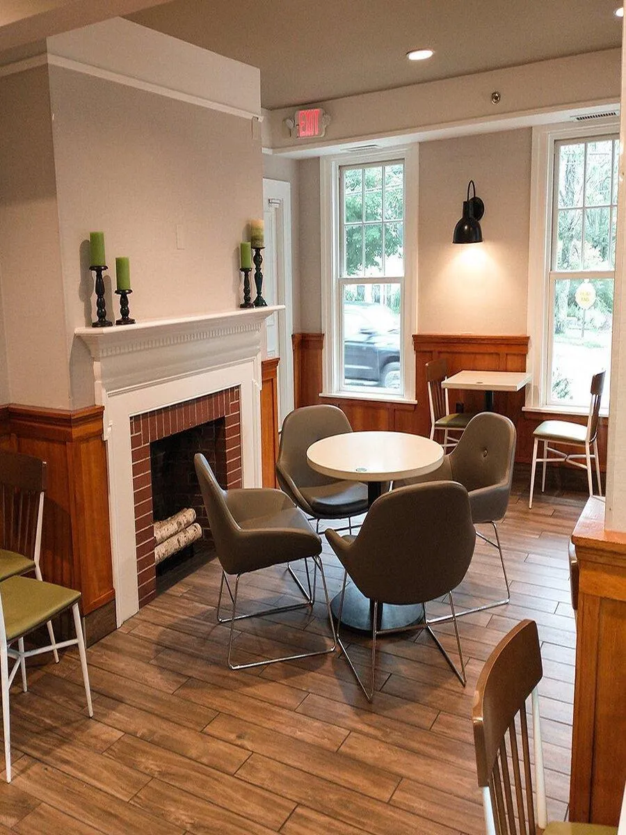 Крім того, всередині є дерев'яні меблі, індустріальні світильники, підсвічники та символіка тих часів. До прикладу, зображення ретро-автівки Ford на стіні.