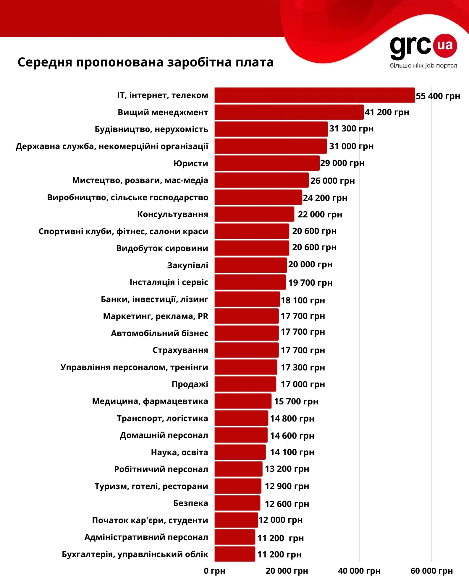 - IT-фахівці – понад 55 тисяч гривень;