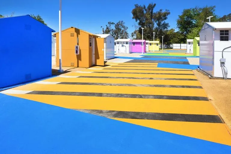 Будинки прикрашені модерністським живописом, що надає будівлям привабливий та веселий зовнішній вигляд. Модулі мають швидку систему складання та незалежний простір для кожного мешканця. Кожен житель зможе насолодитися власною автономією та приватністю.